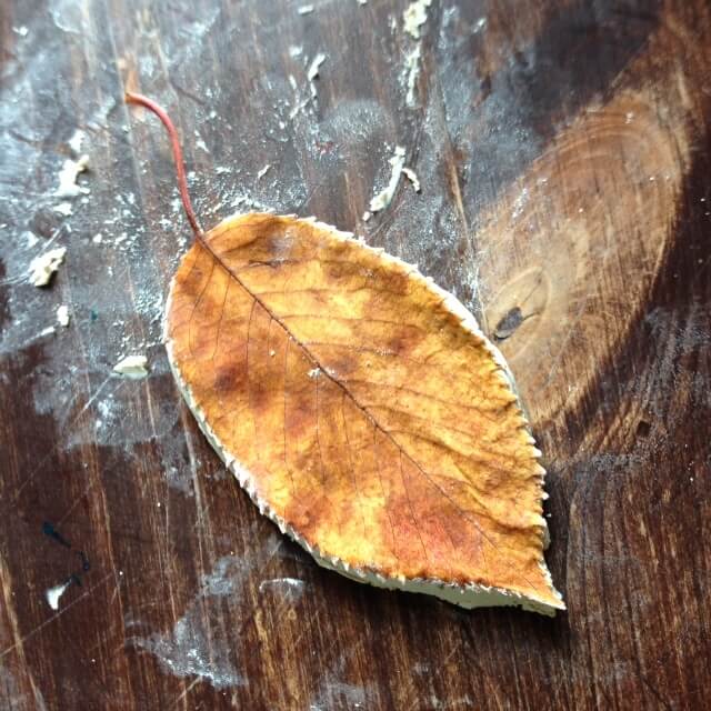 Der Sohn sagt „Der Herbst kommt“ und eine Freundin, die mich gestern besucht hat, hat vor unserem Haus die erste glänzende Kastanie gefunden. Der Herbst kommt also wirklich. Und mit dem Herbst kommt nicht nur die wohlig-warme Zeit im Haus bei Kuchen und Kakao, sondern auch die Zeit der Herbstbasteleien: Laternen wollen geklebt werden, Kastanien gebohrt und aufgefädelt oder zu Tieren gebastelt. Blätter in allen Farben und Formen werden gesammelt und auf Papier geklebt, angemalt, aufgefädelt – oder eben abgeformt und so konserviert.