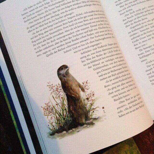 Der abendliche Lesespaß kam diesmal von Denys Watkins-Pitchfords „Die Wichtelreise„. Hier begeben sich die drei Wichtel Zirbel, Nießerich und Schlucker auf die Suche nach ihrem verschollenen Bruder Wolkennase. Eine abenteuerliche Reise, die für die Tochter an einigen Stellen wirklich sehr spannend war, die natürlich aber gut endet mit vielen Begegnungen und neuen Freuden. Besonders schön ist an diesem Vorlesebuch die Sprache und der Ausdruck. Aber auch die schönen Illustrationen machen Freude beim Lesen.
