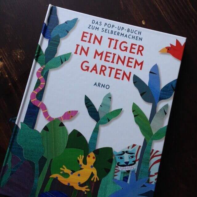 Ganz am Anfang möchte ich Euch das Buch vorstellen, das uns diesen Monat wirklich am meisten beeindruckt hat: Ein Pop-Up-Buch zum Selbermachen aus dem Prestel Verlag. „Ein Tiger in meinem Garten“ heißt es und genau darum geht es auch: Hier gibt es fünf Doppelseiten, auf denen man mithilfe von vorgestanzten Elementen aus beiliegenden Bastelbögen Gärten baut. Der Tiger kann dann durch jeden dieser Gärten laufen. Das Buch ist eine großartige Bastelidee für kalte, verregnete Herbsttage oder für Tage, an denen halbkranke Kinder zu Hause sind. Gemeinsam werden die vorgestanzten Teile aus den Bastelbögen geholt, gefaltet, angeklebt und dann das Wunder bestaunt, wie man das Buch schließt und beim Öffnen dann ein schöner Garten erscheint. Der frei bewegliche Tiger, der durch die Gärten streift, lädt zu Geschichten ein und die Tochter hat sogleich dem Sohn und mir ein kleines Puppenspiel vorgeführt. Mit Hilfe beim Falten und Kleben konnten wir das Buch auch schon mit 5 Jahren benutzen. Wirklich eine große Freude für alle Beteiligten.