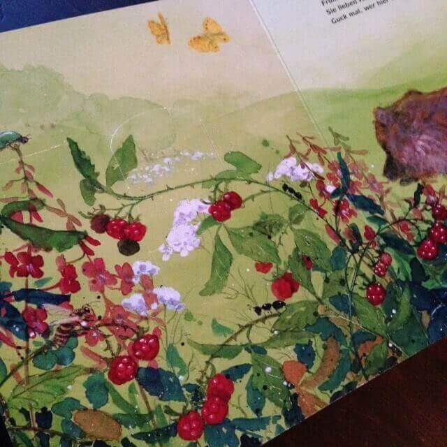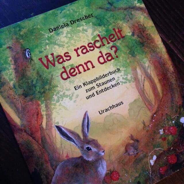 Schon recht lange gibt es in unserem Haus das Buch „Was raschelt denn da?“ von Daniela Drescher, das der Sohn gerade gerne ansieht. In herbstlicher Stimmung wird man hier durch den Wald geführt und kann hinter den verborgenen Klappen viele Waldbewohner entdecken. Leider nur gibt es keine Aussparungen an den Klappen, um sie gut öffnen zu können, weshalb einige Klappen nach langem Gebrauch nicht mehr ganz so schön aussehen.