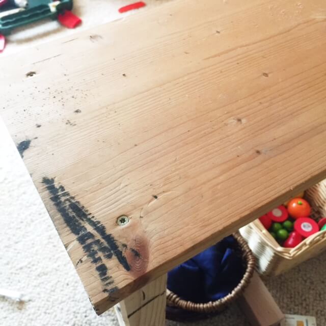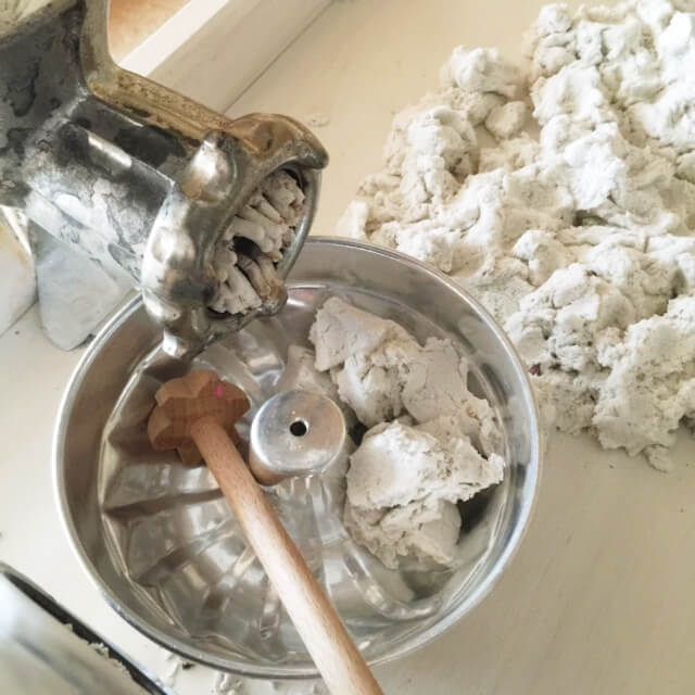 Abschließend wurde das Holz noch mit weißer Kreidefarbe bemalt. Zum Spielen benutzen wir dann entweder den Kinetic Sand oder auch ganz normalen Sand aus dem Sandkasten draußen, wie wir es zum ersten Mal auch im Strandgut in Berlin ausprobiert haben. Die Kinder können sich hier lange beschäftigen: backen Kuchen, formen, drehen den Sand durch die Reibe und Füllen um. Ein wunderbarer Zeitvertreib an regnerischen Tagen.
