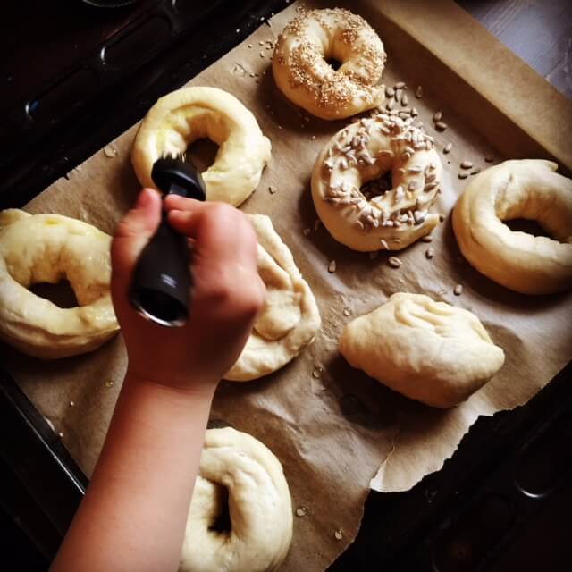 Unser Sohn (gerade 2 geworden) darf auch seit Anfang an in der Küche helfen. Ich finde es wichtig Lebensmittel kennenzulernen, auch wenn es manchmal in „Verschwendung“ ausartet.