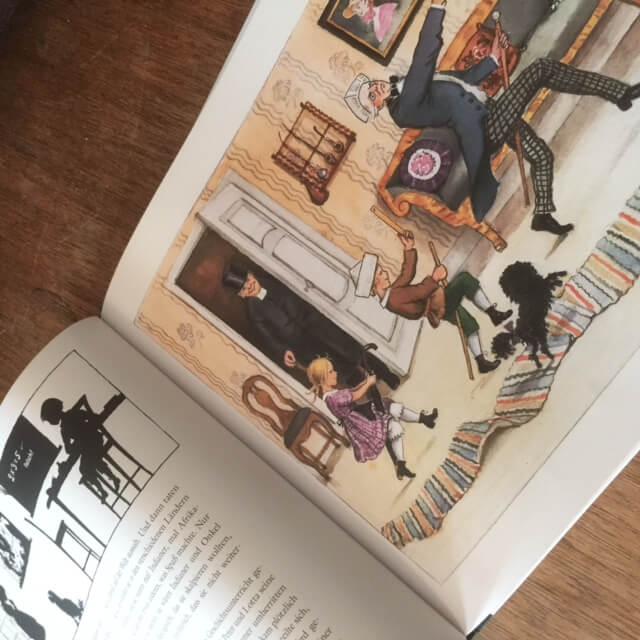 Wir lieben alle die Bücher von Elsa Beskow, die ich hier auch schon in der Vergangenheit vorgestellt habe. Im September passt natürlich wunderbar „Lasse im Garten„, das wir gerade auch wieder viel lesen. Kürzlich ist aber ein neues Buch der Serie um Tante Lila, Tante Grün und Tante Braun erschienen: Tante Brauns Geburtstag. Wunderbar passend für unser Schulkind hier zu Hause wird dort davon berichtet, wie Peter und Lotta nun zu Hause von Onkel Blau unterrichtet werden – ein schöner Anlass, um aufzugreifen, wie Kinder früher gelernt haben und dass man zum Lernen eigentlich nicht in der Schule sein müsste. Eigentlich aber geht es um Tante Lilas Geburtstag, den sie alle gemeinsam vorbereiten wollen und dabei aber eine ganze Menge schief geht. Wie immer eine zauberhafte Geschichte aus dieser Reihe mit wunderschönen Bildern.