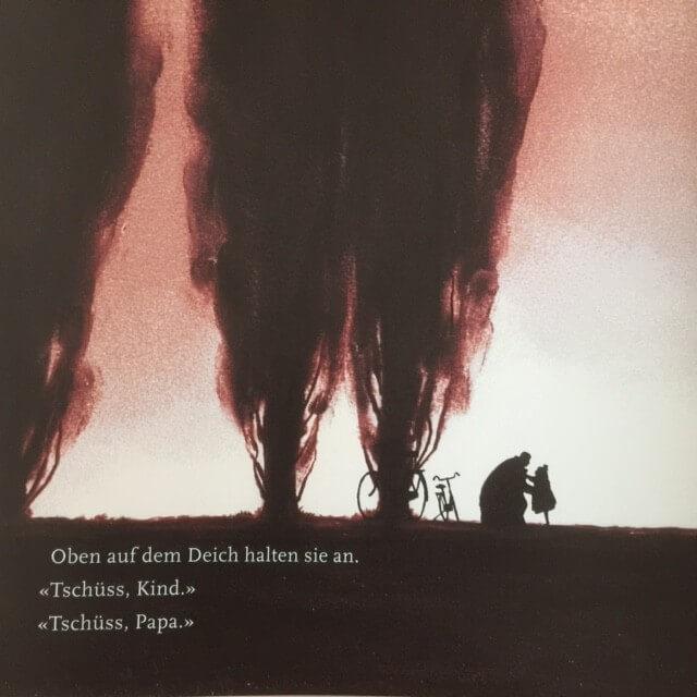 Der Herbst ist auch eine Zeit des Nachdenkens. Und gerade bei meinem großen Kind stellen sich viele Fragen über das Leben. Sicherlich auch in Verbindung damit, dass sie im nächsten Jahr wieder große Schwester wird. Der Kreislauf des Lebens ist jedenfalls Thema, auch das Sterben, denn in letzter Zeit war die Urgroßmutter wieder oft Thema, die vor drei Jahren gestorben ist. Eine stille, ruhige Geschichte, die das Älterwerden von klein auf bis zum Tod aufgreift, ist Michael Dodok de Wits „Vater und Tochter„: Eines Tages verabschieden sich Vater und Tochter am Deich und er rudert davon und kommt nicht mehr zurück. Das Mädchen wird größer, Jahre vergehen, es kehrt immer wieder an die Stelle zurück, sie bekommt Kinder, wird alt, der Deich verändert sich. Als sie als alte Frau dorthin zurück kehrt und sich zum Schlafen niederlegt, trifft sie ihren Vater wieder… Es ist mit wenigen Worten und minimalistischen Bildern ein Buch, das wirklich sehr nah geht und mir beim ersten Lesen (ich lese die Kinderbücher immer erst einmal alleine, bevor ich sie mit den Kindern ansehe) die Tränen in die Augen brachte. Es eignet sich, um über den Kreislauf des Lebens zu reden mit größeren Kindern und wurde 2005 mit der Silbernen Feder, dem Kinder- und Jugendbuchpreis des Deutschen Ärztinnenbundes e.V. ausgezeichnet. Der zugehörige Kurzfilm wurde 2001 mit einem Oscar ausgezeichnet.