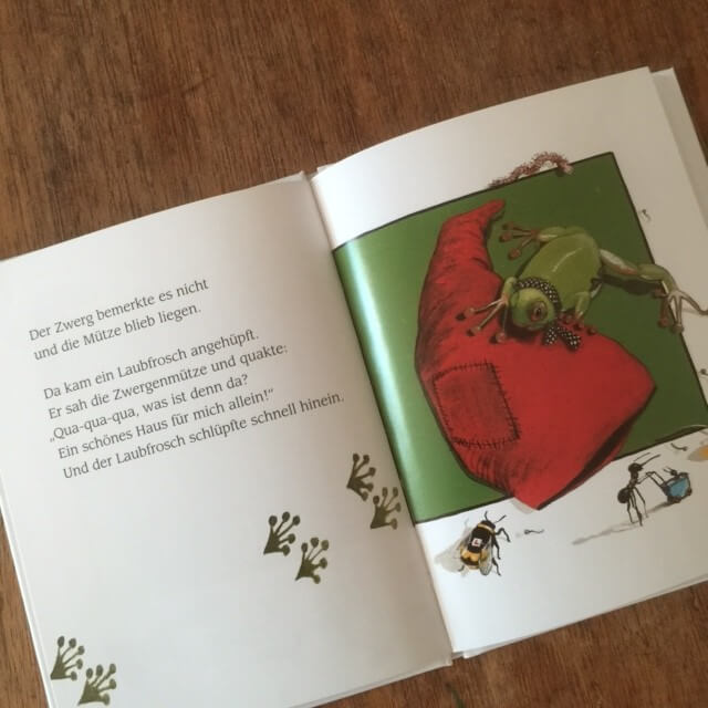 Und auch noch ein Buch für die Kleineren möchte ich Euch zeigen: „Die Zwergenmütze“ von Brigitte Weninger und John A. Rowe. Ähnlich wie in dem Winterbuch „Ein Märchen im Schnee