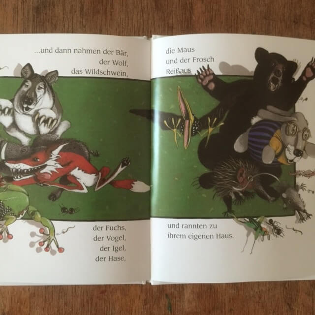 „, das die Kinder in der Vorweihnachtszeit vorgelesen bekommen, geht es hier um einen kleinen Zwerg, der im Wald seine Mütze verliert, die dann ein zu Hause wird für allerlei Waldbewohner wie Bär, Wolf, Wildschwein, Maus, Frosch, Fuchs, Vogel, Igel und Hase. Ganz schön viel Platz ist dort auf engstem Raum – nur den Floh möchte niemand dabei haben. Ein handliches kleines Buch, mit dem man schön über die Waldtiere sprechen kann und über den Unsinn, ob wirklich so viele Tiere in eine Zwergenmütze passen oder nicht.