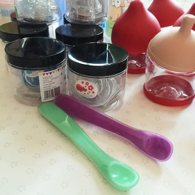 Glücklicherweise konnte ich auch für weitere Dinge Sponsoren finde, die Sachen bereitstellen. Während ich mich bei der letzten Spendenaktion insbesondere auf Kleidung konzentriert hatte, standen diesmal Alltagsgegenständen im Vordergrund. Ich hatte von einigen Stellen gehört, dass es auch an Trinkflaschen und Nuckeln mangelt. Und auch wenn wir selber hier ja keine Babyflaschen und Nuckel verwenden, kann ich den Bedarf verstehen. Die Firma Little big things hat deswegen ein Spendenpaket zusammen gestellt mit Babyflaschen der Firma mimijumi, mit Kinderlöffeln von Spuni und Nuckeln aus ihrer eigenen Herstellung. Die Firma IsyBe hat 4 Trinkflaschen zur Verfügung gestellt für Kinder.