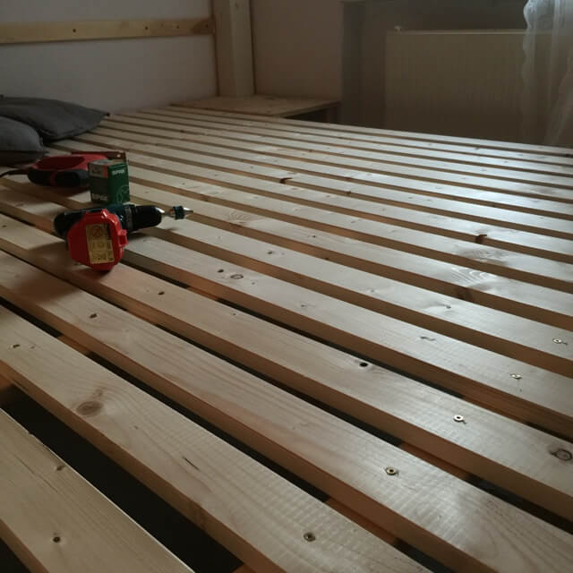 Boah, ist das geil! Da werde ich richtig neidisch, dass unser Schlafzimmer dafür zu groß ist. Wenn ich das so von Wand zu Wand bauen könnt, genial. Wir schlafen im Moment mit 2 Kindern und Hund in einem 1,80 Bett. Ich würde mir gern ein 2,70 Bett bauen, mir fehlt aber im Moment die Zeit dafür. Die Kinder schlafen beide zusammen in ihrem gemeinsamen Zimmer ein und kommen dann bei Bedarf im Laufe der Nacht zu uns. Wir wachen eigentlich immer zu viert im Bett auf. Ab und zu wäre mehr Platz schön und spätestens wenn Kind No. 3 irgendwann unterwegs sein sollte, muss ich neu über das Bett nachdenken.