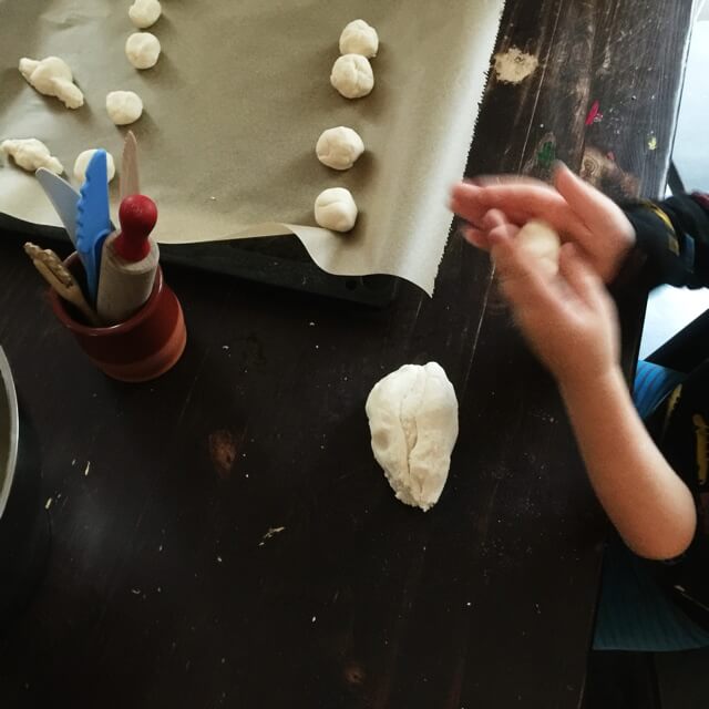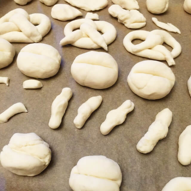 Für die „Brötchenabteilung“ unseres Kaufmannsladens haben wir Brot und Brötchen aus Salzteig selber gemacht. Hierfür verwenden wir einen besonderen Salzteig, der besonders glatt und nicht allzu hart wird. Er besteht aus: