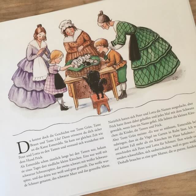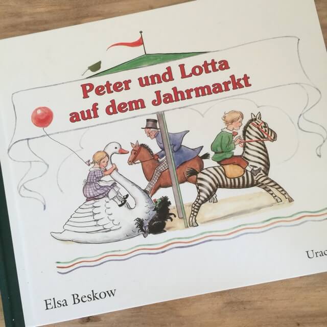 Ein neues Buch aus der Serie um Tante Grün, Tante Lila und Tante Braun bereichert unser Bücherregal und die Kinder sind sehr erfreut darüber: Peter und Lotta, die beiden Kinder, die von den drei Tanten aufgenommen wurden, erleben auch diesmal wieder Abenteuer. In Peter und Lotta auf dem Jahrmarkt fahren die Tanten mit Onkel Blau zum Jahrmarkt und die Kinder sollen eigentlich daheim bleiben. Doch über viele Irrwege und Abenteuer gelangen sie schließlich doch dorthin. Dieses Buch ist noch etwas aufregender als das zuletzt vorgestellte von Tante Brauns Geburtstag und es gibt einige Stellen, die die Kinder weniger mögen: Beispielsweise als den Kindern beim Baden im Wald die Kleider gestohlen werden oder auf dem Jahrmarkt der „zahme Bär“ auftritt. Auch die Androhung der Rute von Onkel Blau bringt Gesprächsbedarf über Erziehungsmethoden früherer Zeiten. Die Illustrationen sind jedoch so zauberhaft wie immer und insgesamt ist auch dieses wieder ein gern gehörtes Vorlesebuch der Kinder – allerdings mit einigen Gesprächsanlässen.