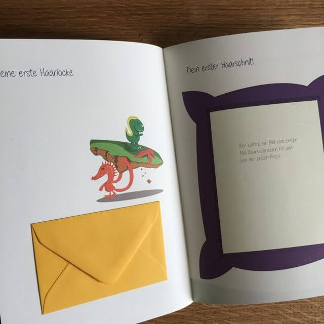 Auch ein schönes Buch, das eher für den Babysohn da ist, ist Annika Kuhns „Jippieh! Endlich bist Du da„. Es ist ein Babybuch, in dem alle Erinnerungen kurz festgehalten werden können auf 60 schön gestalteten Seiten. Geschlechtsneutral gestaltet, können dort Babylocke, Fußabdrücke und geschriebene Erinnerungen festgehalten werden. Ein wirklich schöner kleiner Begleiter durch die Babyzeit.