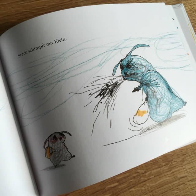 Ein Buch der besonderen Art ist Stina Wirséns „klein„. Darin geht es um den kleinen Wusel Klein, dem es zu Hause nicht gut geht: Die Eltern Stark und Groß streiten sich immer wieder , schreien Klein an und Klein hat viel Angst. Als Groß auch noch ganz geht und Stark nur noch weint, kümmert sich niemand mehr um Klein. Glücklicherweise hat er jedoch eine aufmerksame Erzieherin, die zuhört und sich um Klein kümmert. Es ist ein beeindruckendes Buch darüber, wie es Kindern gehen muss, wenn sie in solch schwierigen Familien leben und wie wichtig es ist, dass wir alle aufmerksam sind und auf die Bedürfnisse der Kinder achten: „Denn alle, die groß sind, sollen sich um die kümmern, die klein sind. So ist das.“ Mit wenigen Worten und ausdrucksvollen Bildern können Kinder aufgeklärt werden darüber, dass elterliches Verhalten nicht angenommen werden muss, wenn es ihnen nicht gut tut und sie sich Hilfe suchen dürfen, indem sie über ihr Erleben sprechen. Für ErzieherInnen ist es ein gutes Buch, um noch einmal aufmerksam zu machen auf die Berichte der Kinder.