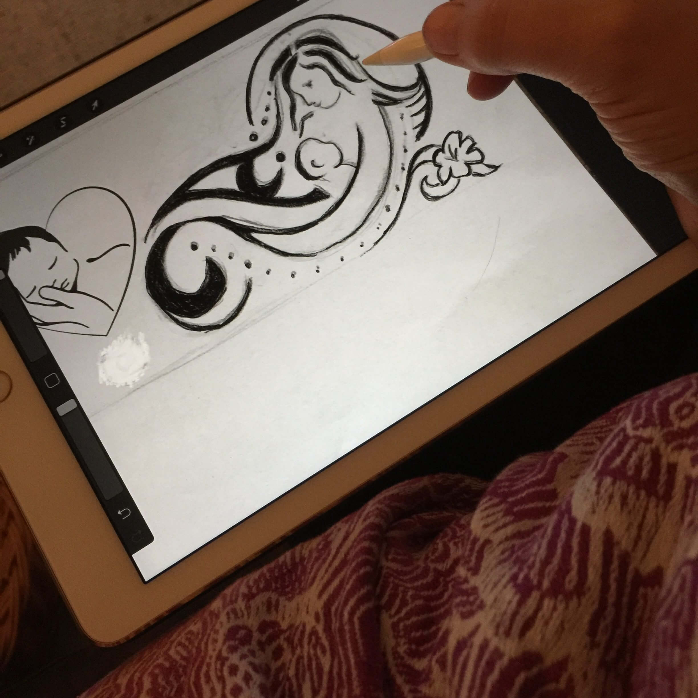 Ganz so einfach war es dann aber doch nicht, denn ich saß viele Wochen lang an dem Motiv: Angefangen mit einigen Skizzen auf Papier, dann auf dem IPad weiter gemalt, gelöscht, neu gemalt. Viele Male meinen Mann gefragt: Geht das so? Denn auch wenn ich unglaublich gerne und viel zeichne, habe ich in diesem Bereich mein Päckchen aus der Kindheit mit zu tragen und eine mahnende Stimme, die nicht zufrieden ist. Doch eines abends saß ich auf dem Sofa und hielt das Bild in den Händen, das sich einfach richtig anfühlte. Genau so sollte es aussehen. So und nicht anders.