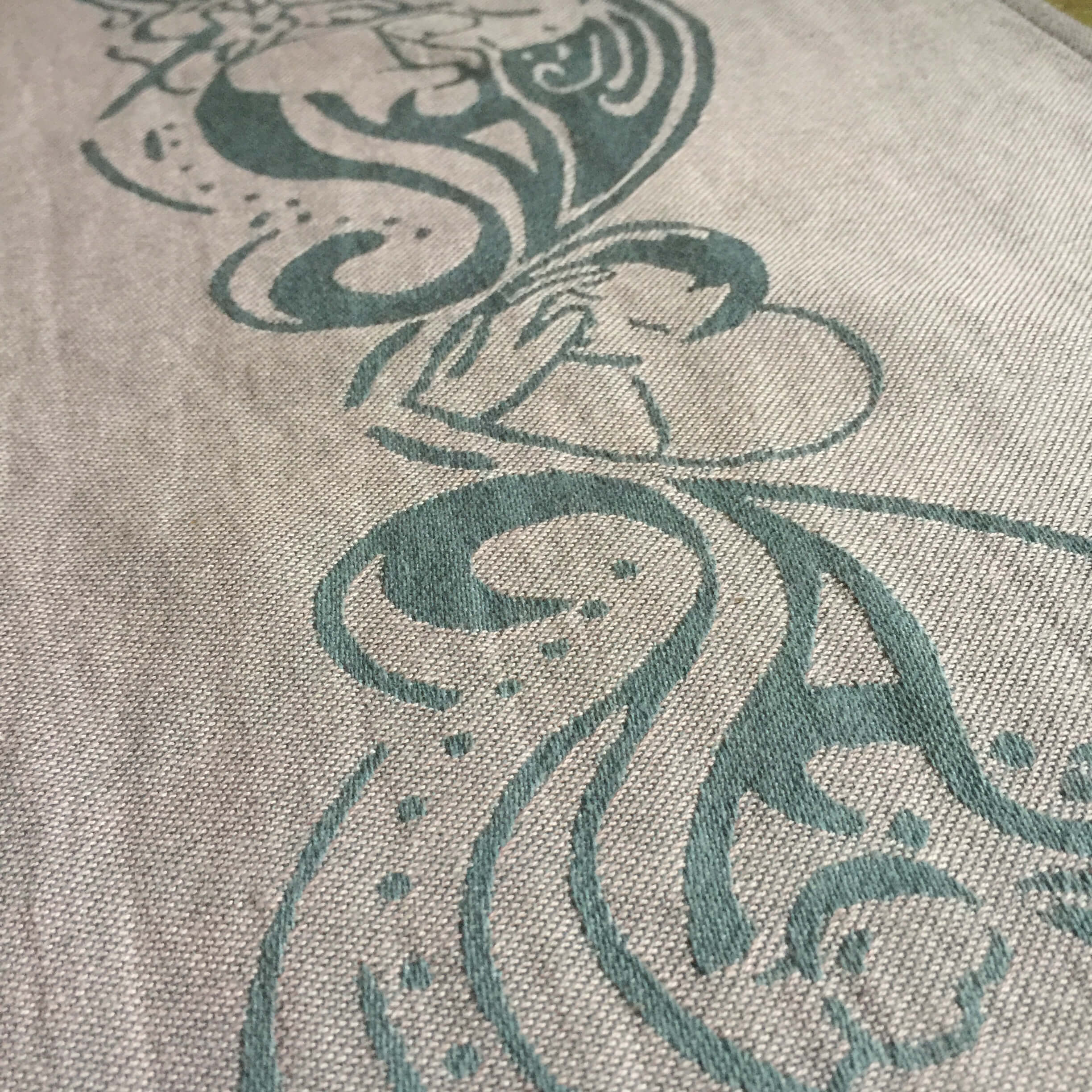 Als ich eines Tages bei einem Vortrag bei Didymos war, hört ich, dass dort Tücher auch auf Anfrage nach eigenem Motiv gestaltet werden. Dieses Wissen trug ich ein paar Jahre mit mir herum, immer irgendwo im Hinterkopf wartend. Nun, im Herbst letztens Jahres, hatte ich einen Termin bei Didymos auf der Kind & Jugend Messe und fragte dort noch einmal nach: Ja, Tragetücher werden auch auf Wunsch angefertigt. Ich fuhr nach Hause und wusste: Ich möchte gerne ein eigenes Tuch haben.