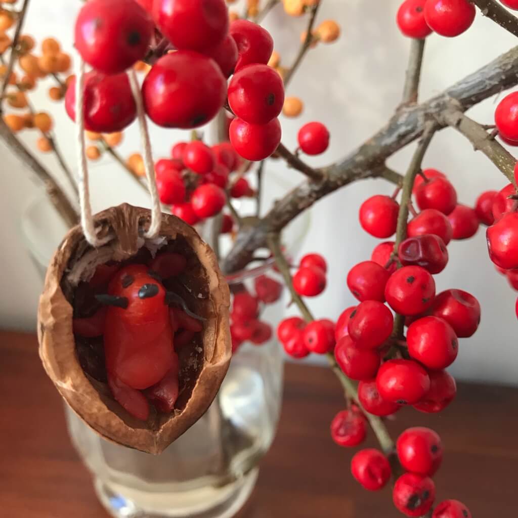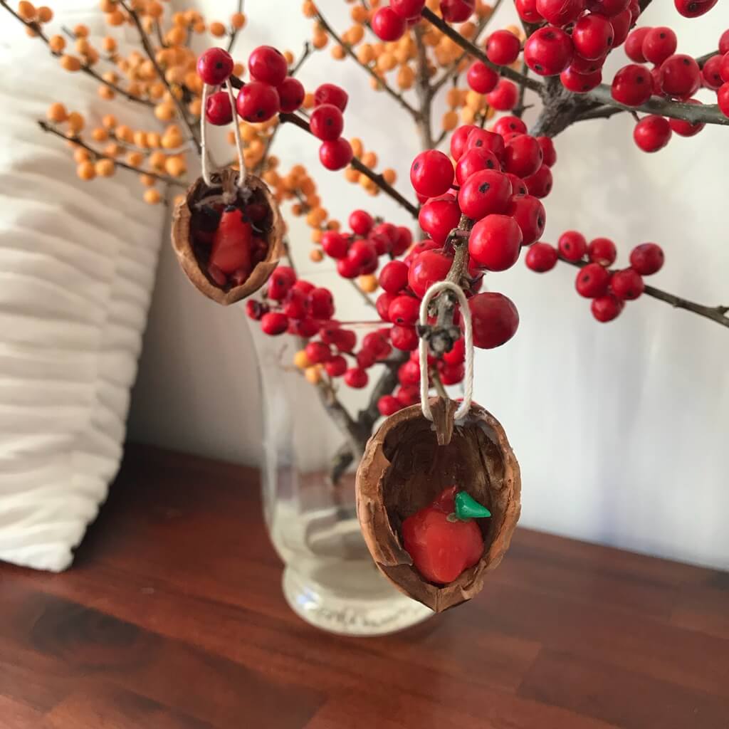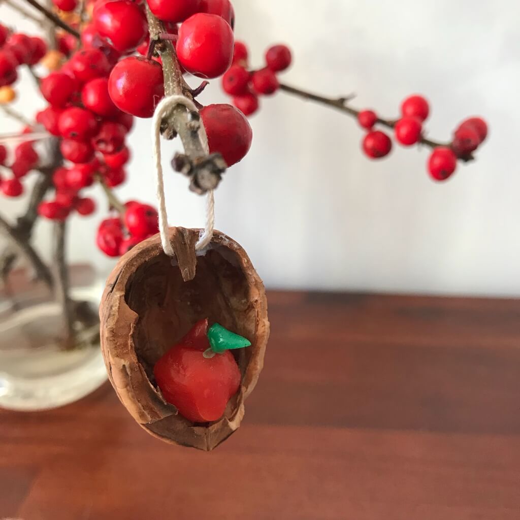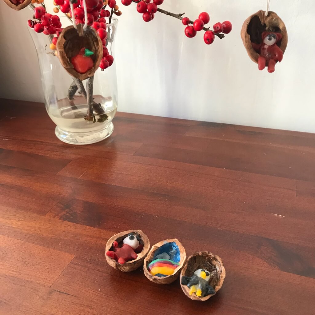 Die Walnussschalen können dann als Geschenkanhänger, Deko oder Weihnachtsbaumschmuck benutzt werden – oder sie werden einfach wieder umgestaltet, denn es ist ja noch ein wenig Zeit bis Weihnachten.