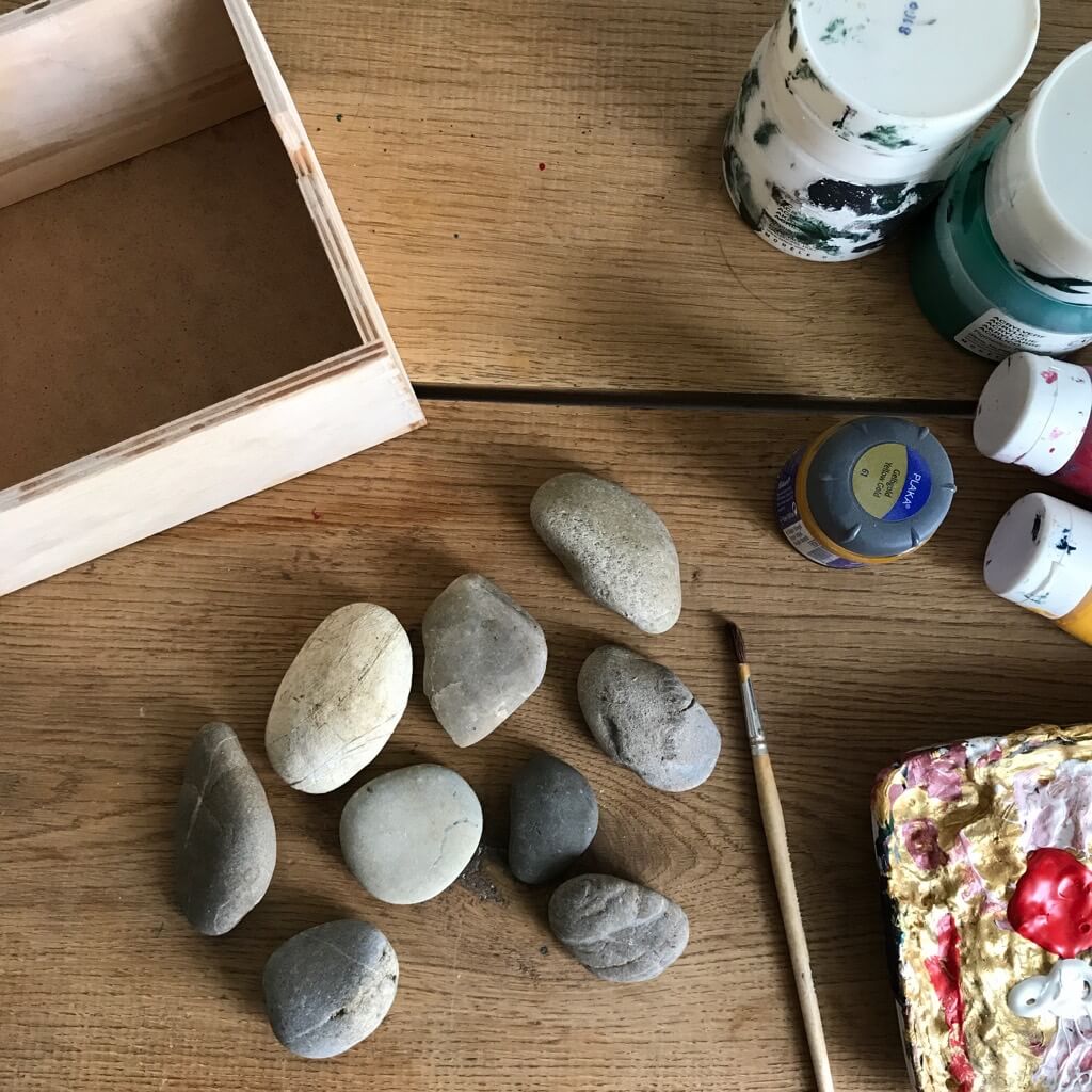 - Farbe für Holz + Steine (ggf. plus Pinsel)